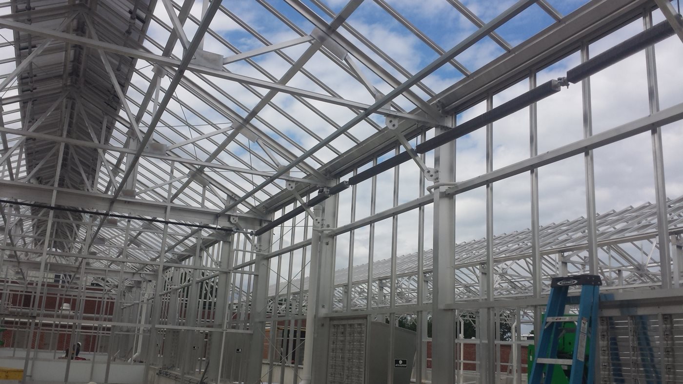 - L.L. Klink self-performing erection and glazing of a NEXUS aluminum greenhouse structure with glass glazing, 16 individually controlled compartments, environmental controls, hot water heat, fan and pad cooling, energy/shade curtains, HID lights, irrigation, fertigation, HAF fans.